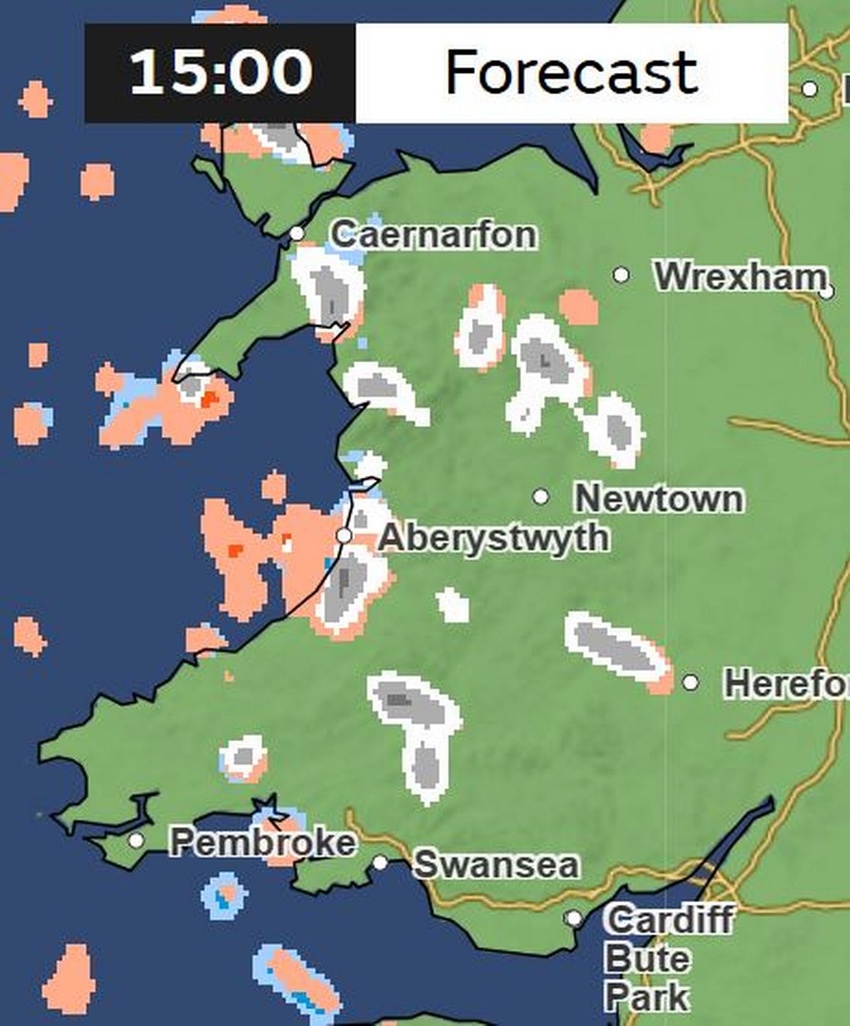 This is the picture at 3pm on Saturday. The Met Office forecast for Wales this weekend states: “Turning colder, especially in the wind, with the increased risk of wintry showers into the weekend. Frost and ice overnight.”