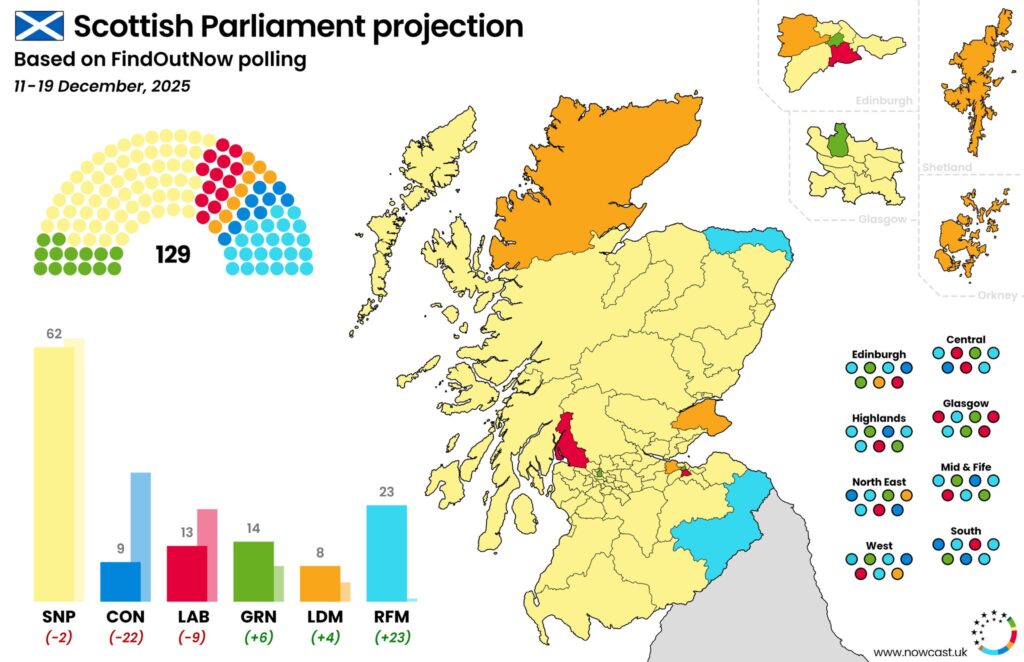 Finally, the polling suggests that Your Party may not make any breakthrough at the Holyrood elections. These elections may have come too early for Your Party, with no figureheads, policies or presence (yet) in Scotland. That may change in the years to come.