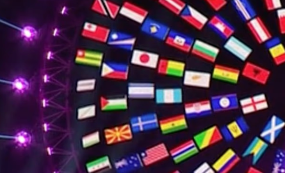 As the segment of the display with the animation draws to a close, the Star of David can finally be seen faintly on the Israeli flag, but it remains barely visible.