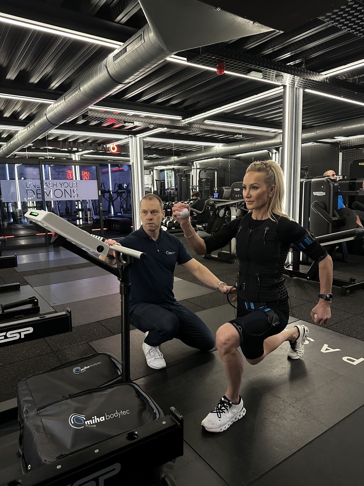 Clare working out with the Eltectrical Muscle Stimulation machine at the gym(Image: CPASE)
