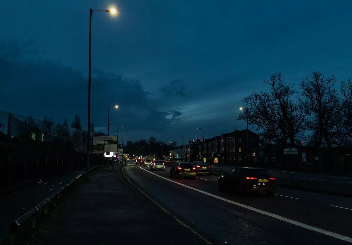 Stretford, before 7am, is cold in December. But it’s not quiet, as traffic roars on the A56.