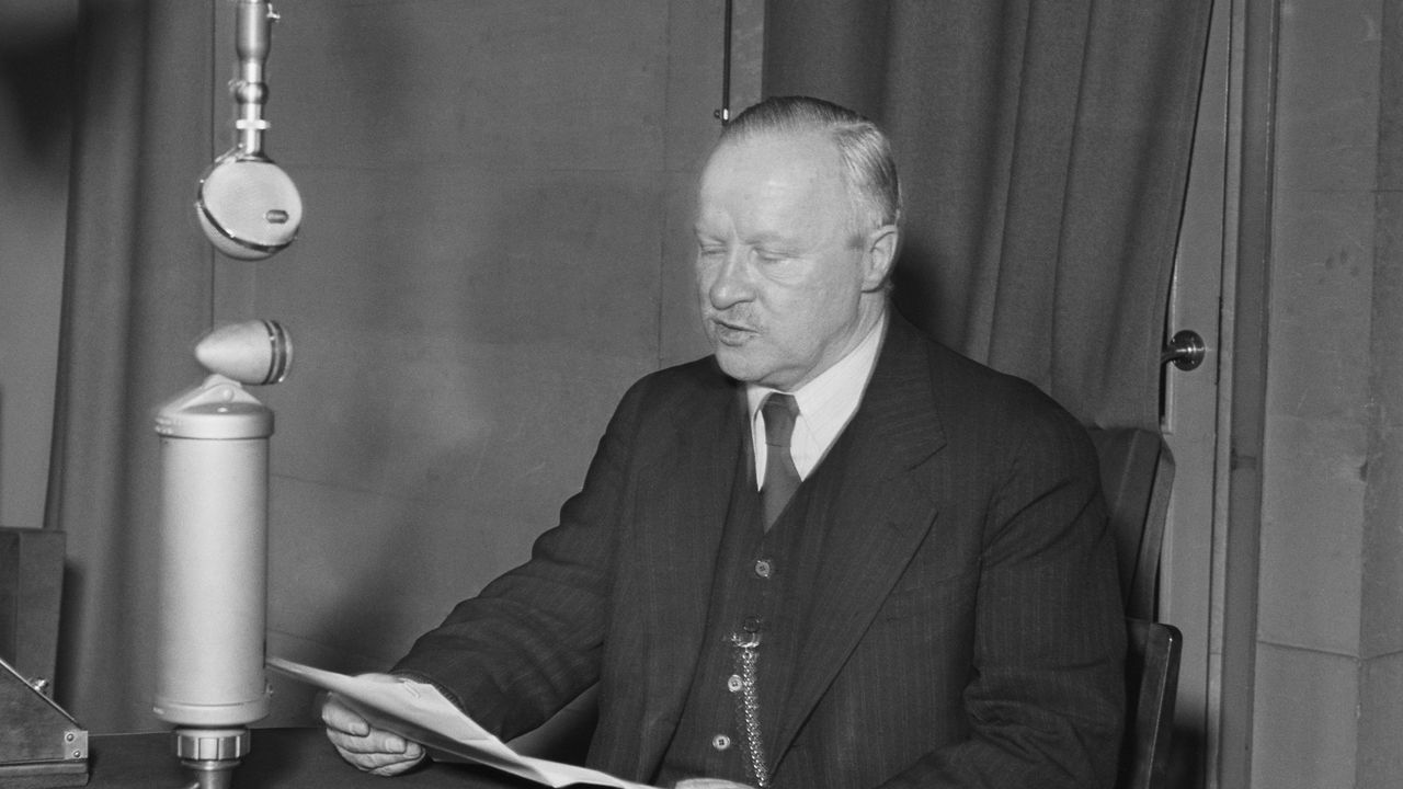 Foreign Minister Väinö Tanner gives radio address announcing the end of the Winter War 1940 [Photo: Yle Archives]