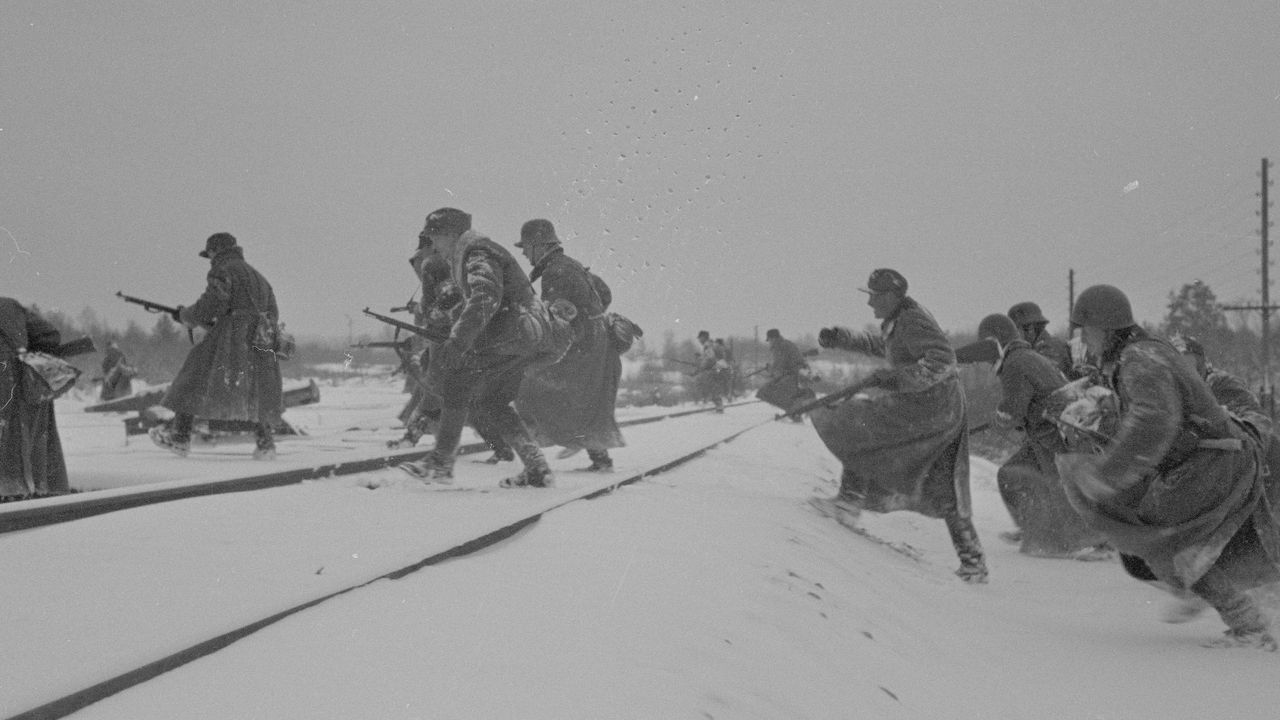 Finnish soldiers crossing the Murmansk railway in 1941 [Photo: Tauno Norjavirta]