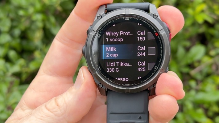Now, there’s also the option to log items within the Nutrition app on your Garmin watch. I’m running the most recent Garmin Fenix 8 public beta, and while I can see this screen, it immediately crashes the moment I touch it. Though the very last try during my video up above, it finally didn’t crash. In short, it basically lets you see a duplicate of the data above, and also lets you log foods that you’ve already defined.