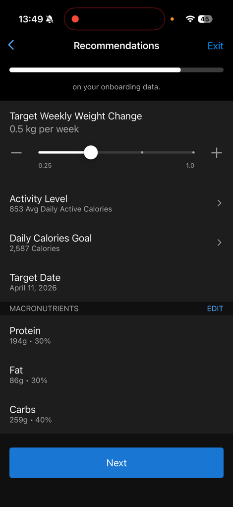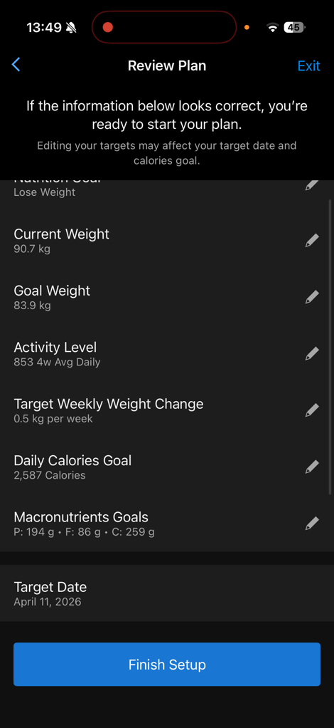 In any case, from there, it’ll ask you some bits about your goals here, along with confirming your stats. If you’ve got a Garmin Index scale, it’ll automatically pull in your weight for you. Obviously, I enjoyed ‘relaxing’ during the holidays. But, back at it already. You can change all of these details, I just left them mostly as-is, though I increased the weight loss per week up to 0.5kg (1.10lbs), which given how much I work out, will be pretty easy.