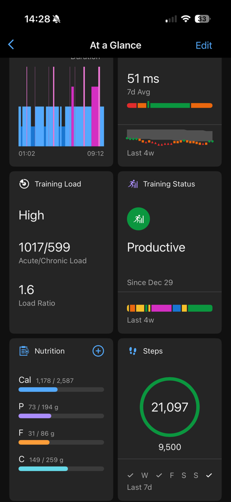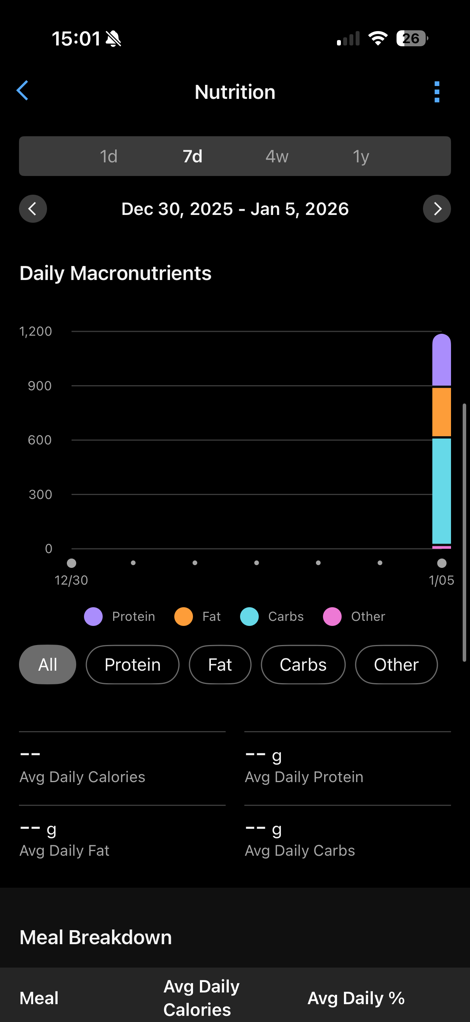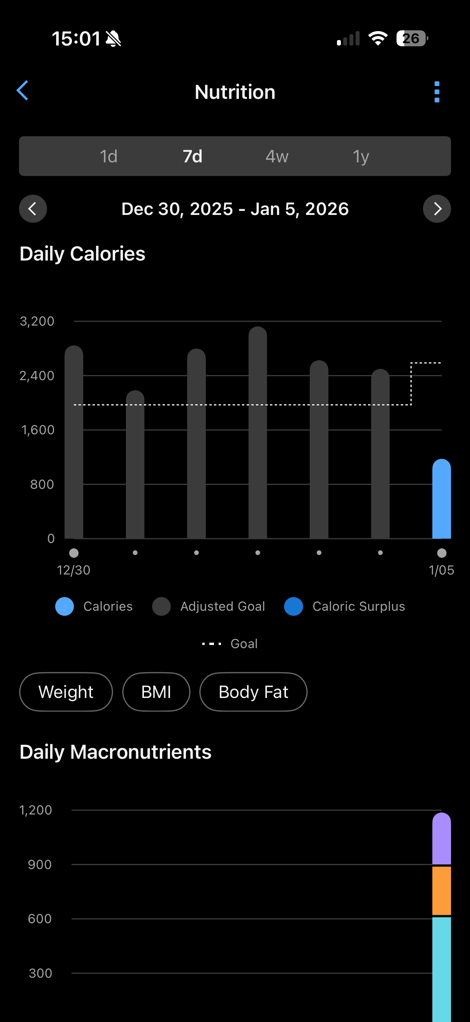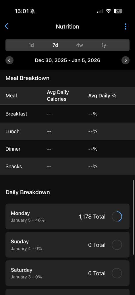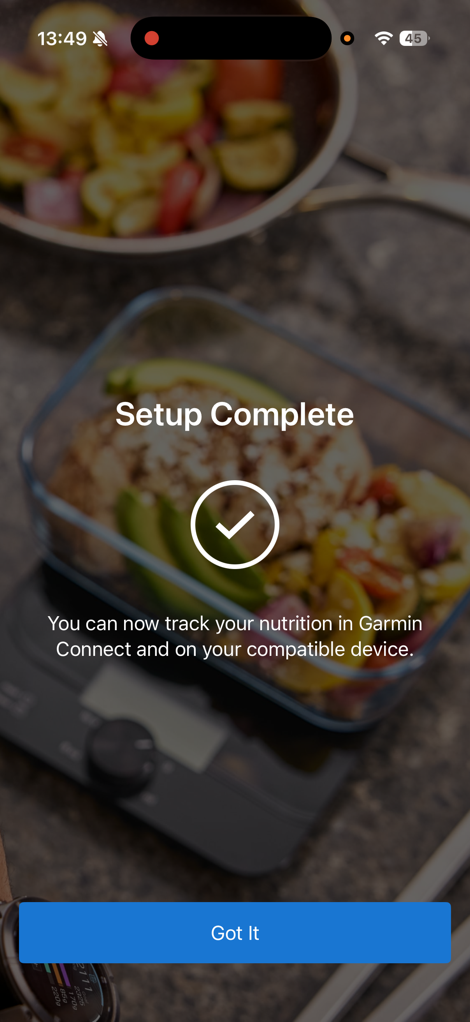 At this point, it’ll be pulling in your data from your Garmin devices, while concurrently waiting for you to populate food/nutrition data into the app.