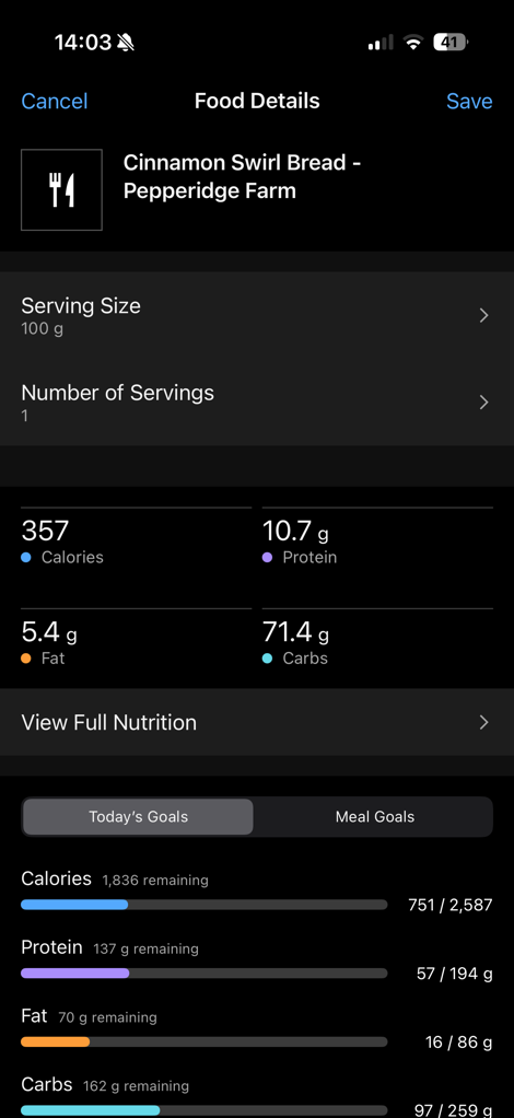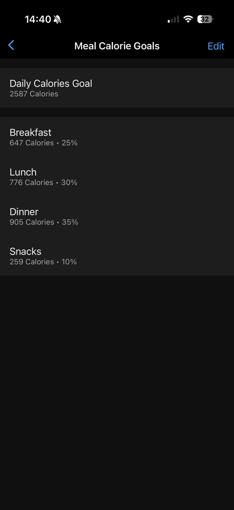 – My foods (things you’ve manually created based on knowing exact values)