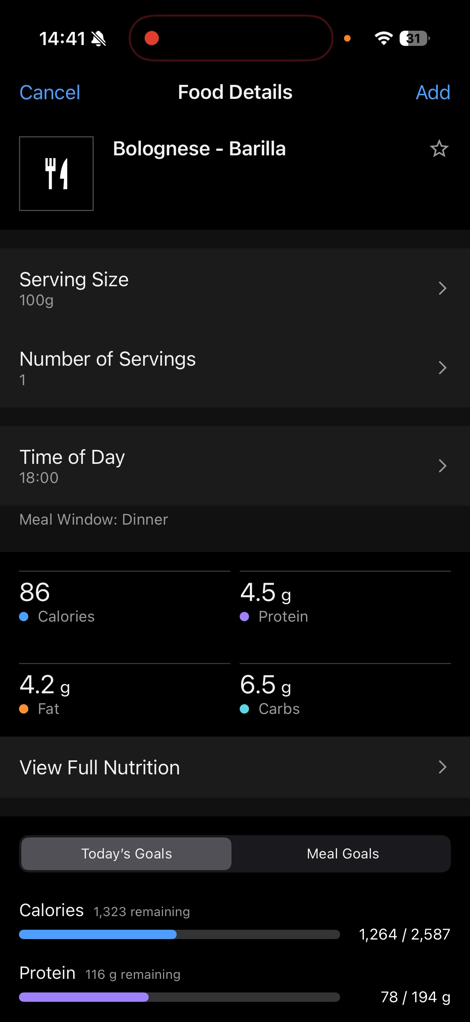 The main ones are pretty self-explanatory, noting that you can tweak serving amounts. However, let’s scan something instead. When you do that, you’ve got two options: Scan the food, or scan the barcode. Starting off with scanning the barcode, I went through my kitchen and scanned just about everything I could find. Almost everything scanned without issue, and in under 1 second. Super fast. Note below you can select the serving size, by weight or portion, depending on the product. It then shows the full details of that portion down below.