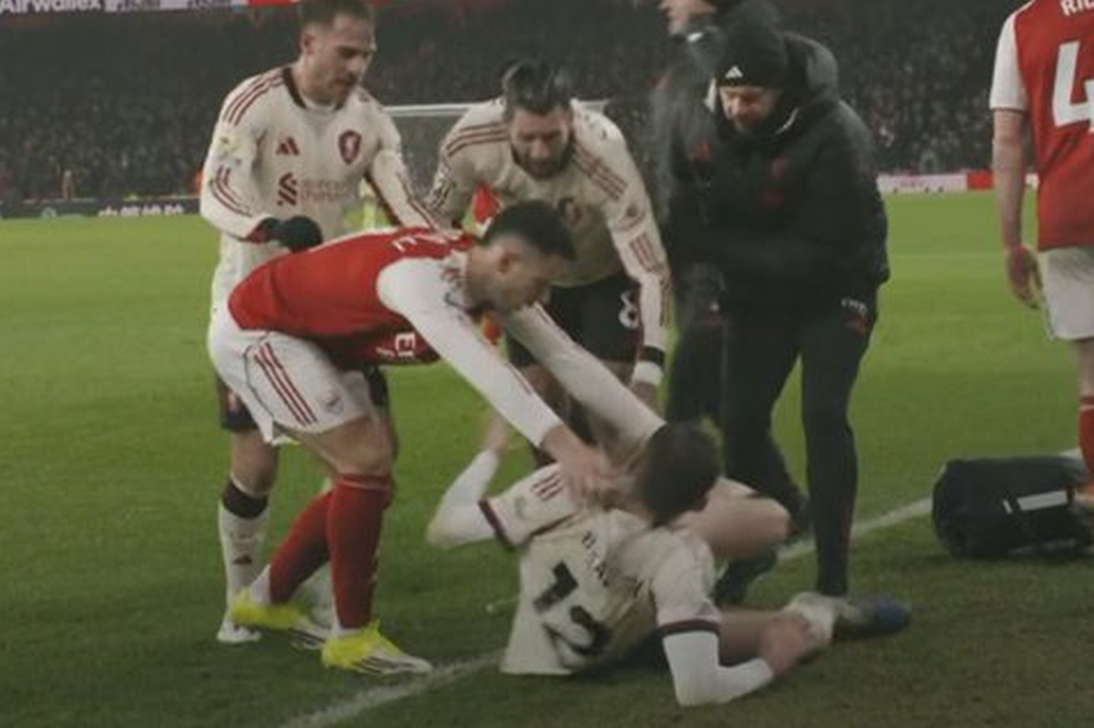 The Northern Ireland full-back was left stricken after attempting to clear the ball. Bradley looked to kick the ball into touch before awkwardly landing after averting the danger. The incident turned ugly when Arsenal forward Gabriel Martinelli threw the ball at the defender before trying to push him off the pitch for play to resume.