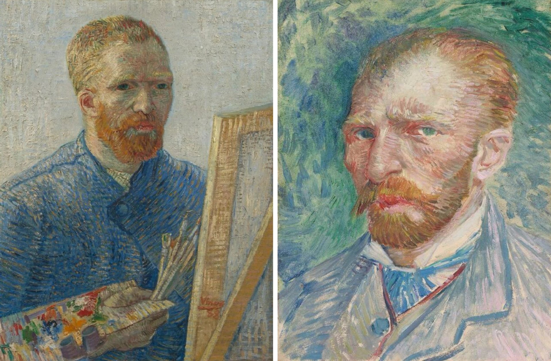 Van Gogh’s Self-portrait as an Artist (December 1887-February 1888, Van Gogh Museum) and Self-portrait (April-June 1887, Kröller-Müller Museum), now in two separate exhibitions in Japan, in Ngoya and Kobe