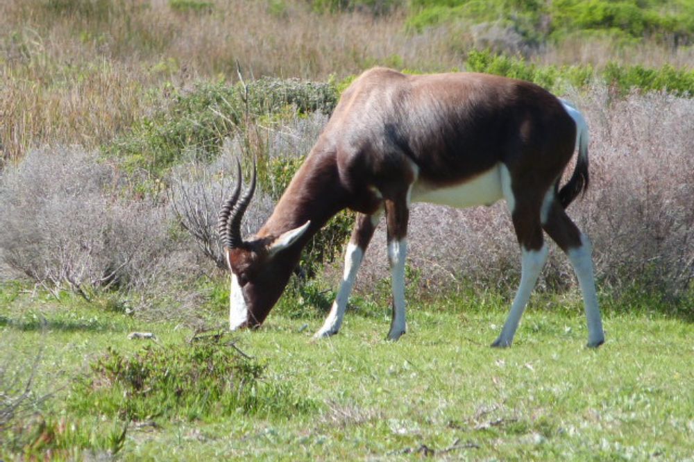 Wildlife is not confined to game parks, and a botanical safari can be a good way of encountering big game as an incidental result of being in plant-rich places. On our first day we came upon a pair of white-faced, white-legged Bonteboc, one of the most handsome of all the bocs, and there were many more antelope to come, Gemsbok, Eland and Duiker. Most memorable were Cape Mountain Zebra, the smallest of zebras, once critically endangered but now recovering – it has just been announced that a further 47,000ha in the Western Cape will be protected, helping this recovery and the general conservation of this remarkable place. Cape Rock Hyrax were never far from rocks. Ostriches were ever present, and as we were leaving, trundling suitcases to our vehicle, we were accosted by an ostrich.