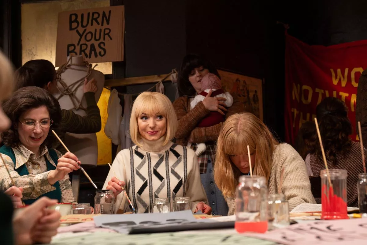 It’s 1971 and Trixie joins in with some bra burning while husband Matthew is thousands of miles away in New York(Image: CREDIT LINE:BBC / Neal Street Productions / Olly Courtney)