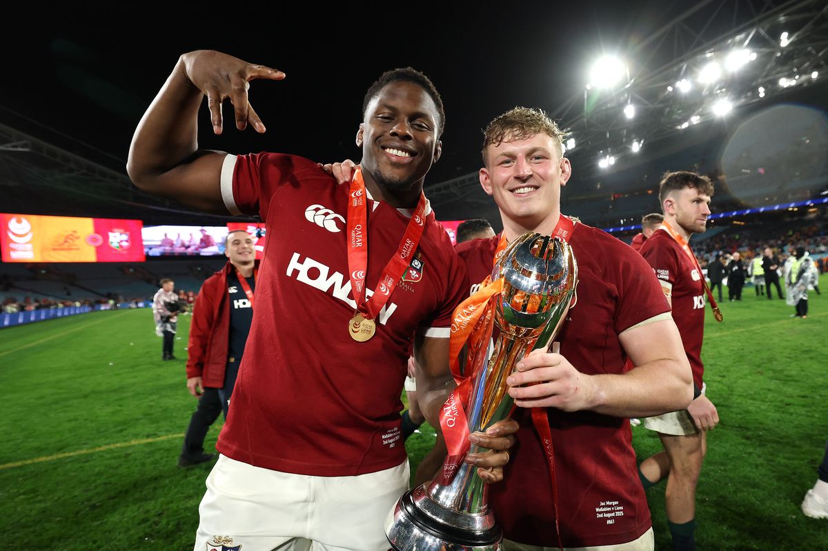 Maro Itoje, the British & Irish Lions captain, celebrates with team-mate Jac Morgan(Image: David Rogers/Getty Images)