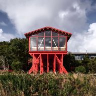 Guillermo Acuña raises seaside annexe on forest of red-painted pine stilts
