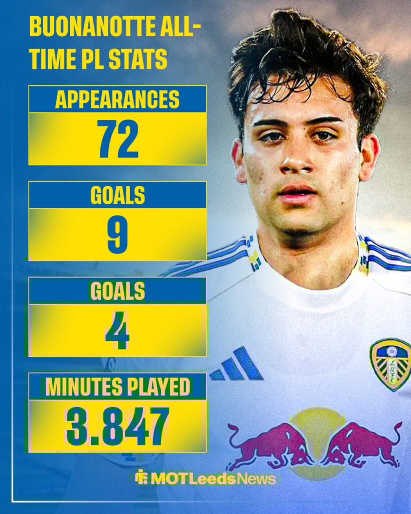 Buonanotte’s all-time stats in the Premier League. Credit: Manh Tung- Breaking Media.Leeds want to bolster attack force further