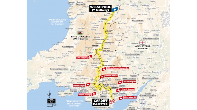 The third stage, a 223km journey from Welshpool to Cardiff, will include seven steep climbs and around 3,000 metres of elevation gain, giving punchers and general classification contenders their first real test.