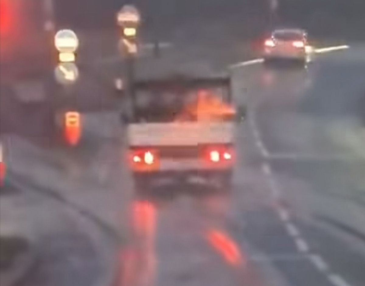 The footage was captured by a concerned passenger along Sheffield Road in Hackenthorpe at around 4:30pm yesterday (Thursday, January 15) after they spotted a barrel on the back of the truck ablaze.