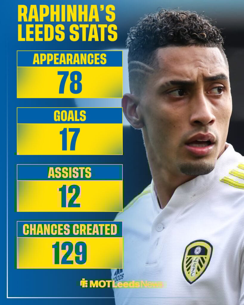 Raphinha’s Leeds stats.Leeds wanted Noa Lang as Raphinha’s replacement in 2022