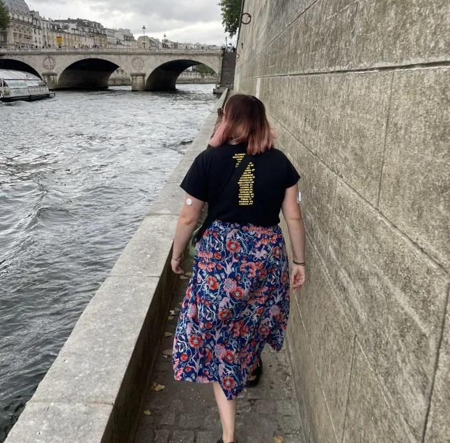 Writer Eleanor Noyce wears an insulin pump and a continuous glucose monitor (Picture: Supplied)