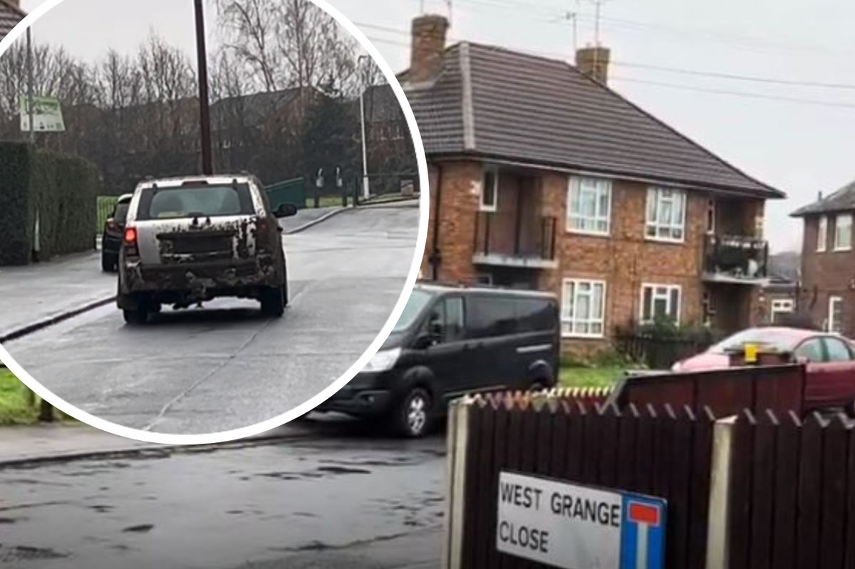 A car – the number plates covered in mud and the front bumper partially missing – sped past LeedsLive journalists, who captured the fleeing vehicle on camera(Image: Leeds Live)