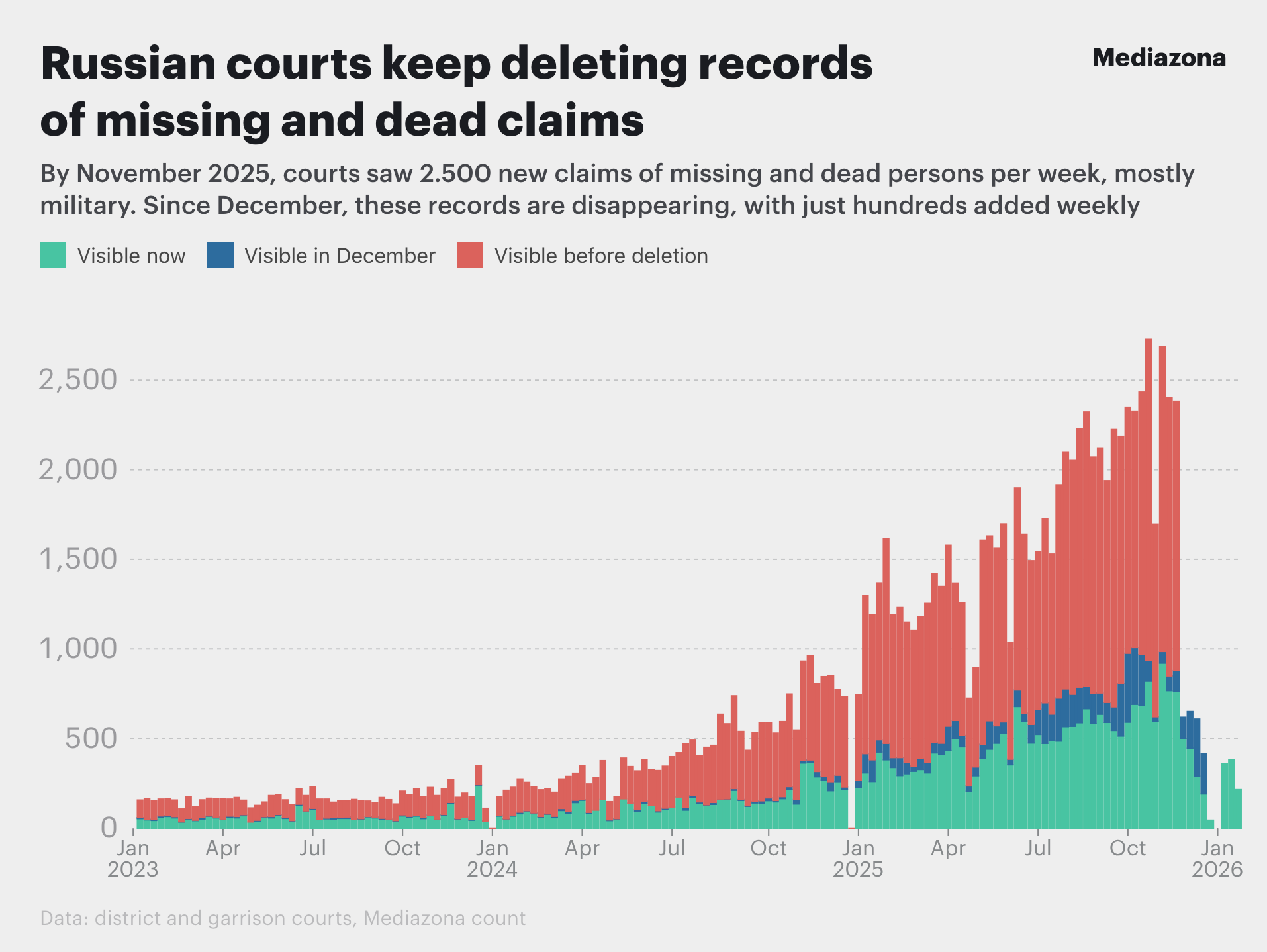 In 2026, Russian courts continued to remove records of lawsuits seeking to declare soldiers missing or dead.