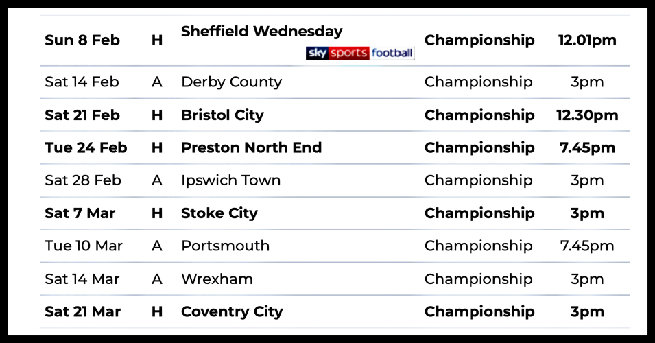 The next nine games as we said are tough. We think far harder than Matos has experienced to date. You only have to see the away games to note that. None are guaranteed anything at all. Derby, Ipswich, Portsmouth and Wrexham come with different challenges. Derby fancy their chances to finish in the top six by the end of the season as do Wrexham. The latter comes with media driven pressure and they are still smarting from their defeat in Swansea just before Christmas. Ipswich are talking about promotion too so to go there and take anything will be a pleasure. The game at Portsmouth is most certainly one of the hardest places to go for any side. They have seen a resurgence of late but are still looking over their shoulders. For the Swans to be looking further upwards they will need something positive at Wrexham and Derby who are currently eight and six points ahead in the league. And Wrexham are in the play offs.