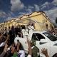 The crowd, filled with marching bands in town for a special Jubilee weekend, erupted in cheers and music as the bells of St. Peter’s Basilica tolled.