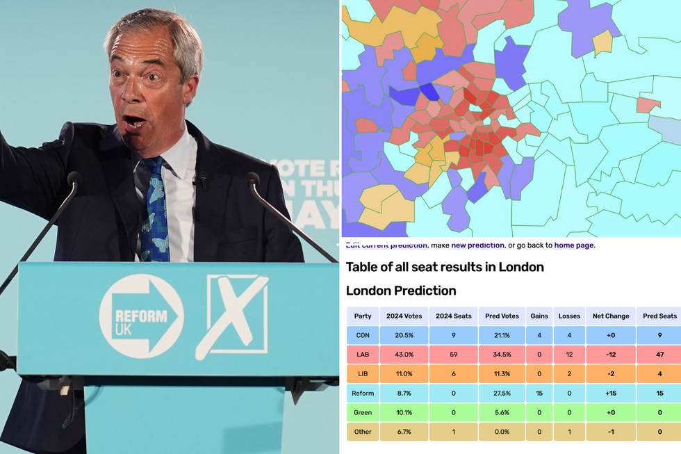 Now, according to number crunching from Electoral Calculus, Labour would lose 12 seats across the capital, should the polling prove accurate. This would hand Reform 15 seats.