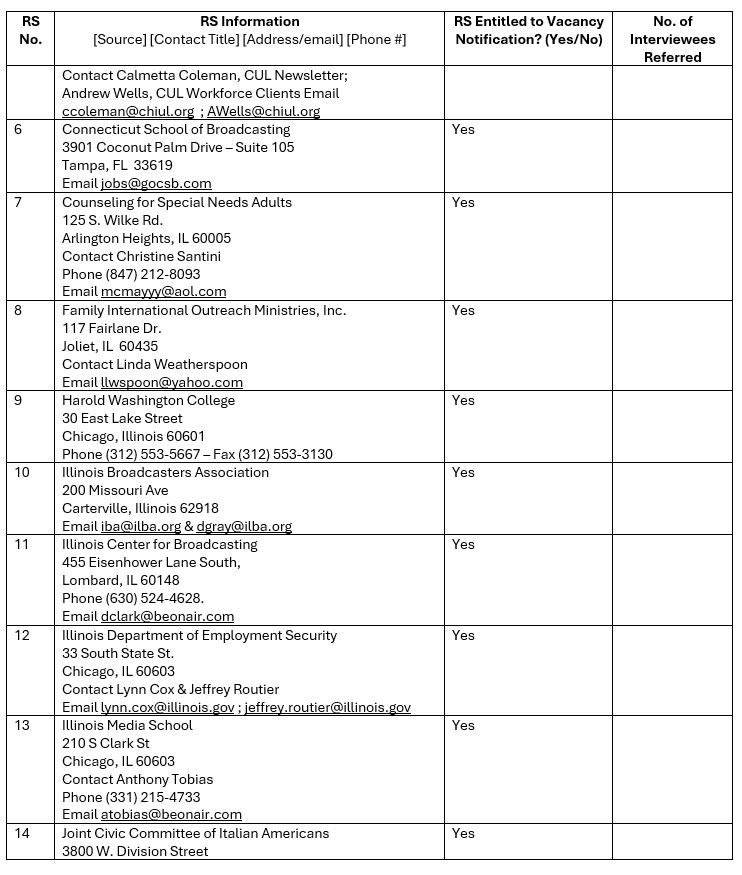 WLS station personnel participated in the following broadcast-related job fairs over the reporting period.