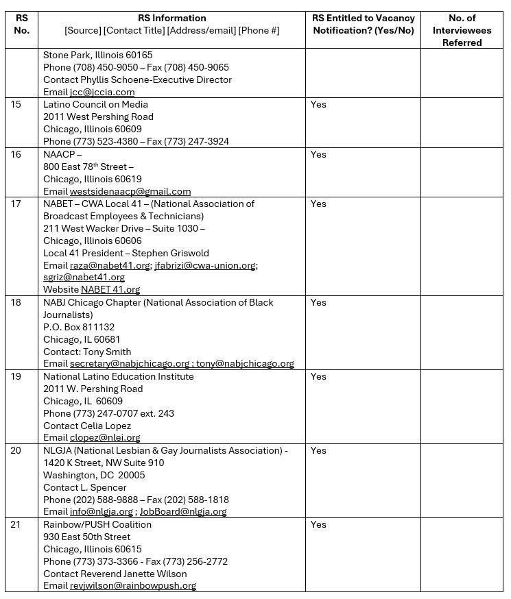 3. Posting open positions on the Station’s website, https://abc7chicago.com/jobs/.