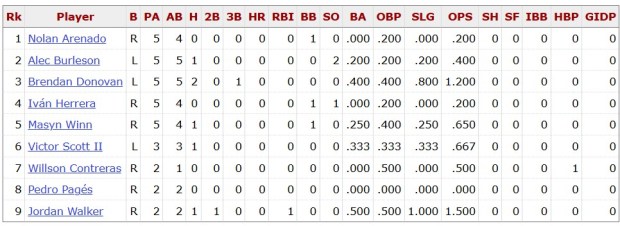 Here is how the Cardinals, who activated Lars Nootbaar (left costochondral sprain), will line up for Game 2: