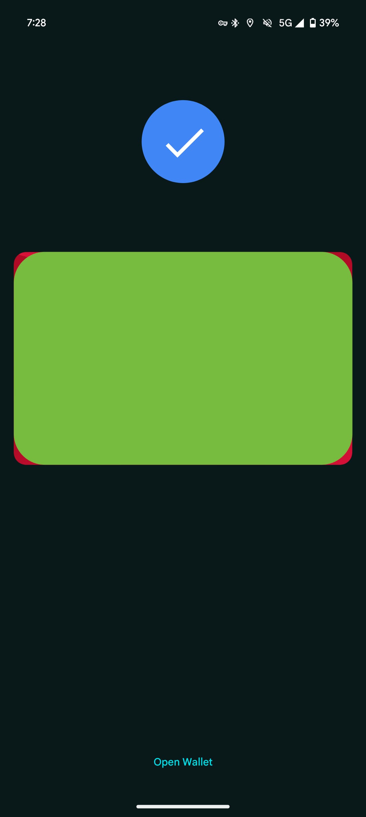 The card jumps up before resting back down in line with the new success animation that is quite elaborate. The NFC waves briefly appear before being replaced by a scalloped Material 3 shape. There’s a white loading indicator within the blue container that becomes the checkmark. A blue wave emanating from the check completes things.