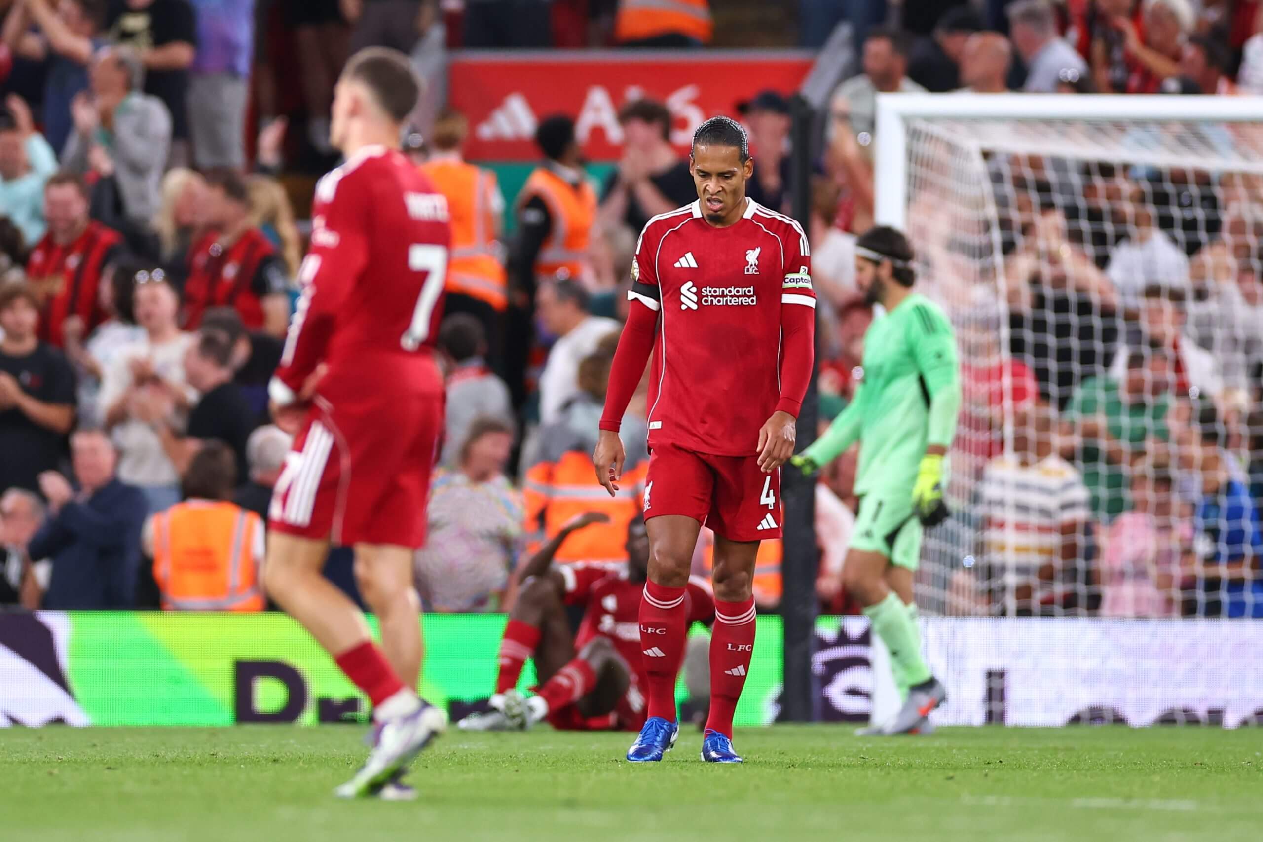 A dejected Virgil van Dijk (Robbie Jay Barratt – AMA/Getty Images)
