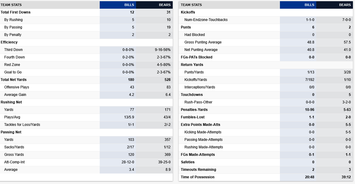 Again, none of it matters because this is just the preseason. That fact won’t stop me from saying that Buffalo was outplayed in every sense of the word. It’s now the team’s worst preseason loss in 50 years of data, at least that which Bills reporter Thad Brown could find. He rightfully notes what happened the year Buffalo lost this way at Soldier field.