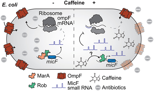 “Caffeine triggers a cascade of events starting with the gene regulator Rob and culminating in the change of several transport proteins in E. coli – which in turn leads to a reduced uptake of antibiotics such as ciprofloxacin,” says biological engineer Ana Rita Brochado, from the University of Tübingen in Germany.
