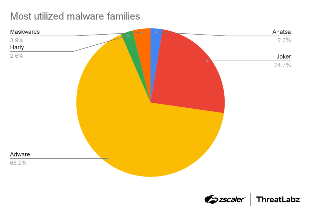 In addition to the malicious Anatsa apps, Zscaler discovered this time, most were adware families, followed by ‘Joker,’ ‘Harly,’ and various maskware.