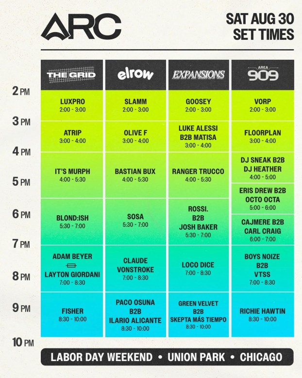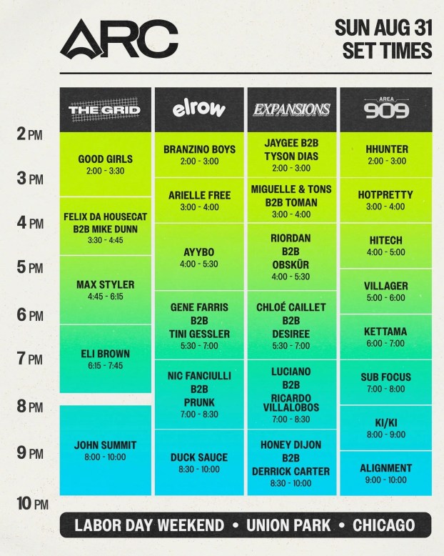 This year’s lineup unfurling Friday-Sunday (Aug. 29-31) marks ARC’s most sonically diverse and ambitious curation yet, featuring pioneering legends, next-generation tastemakers and groundbreaking back-to-back sets that embody the festival’s spirit of innovation and celebration.