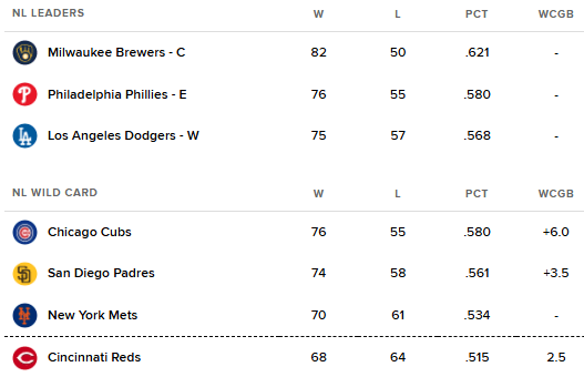 Yesterday was the first time since Aug. 17 that the Padres lost ground to all the teams around them in the playoff chase (the Dodgers, Cubs and Mets).