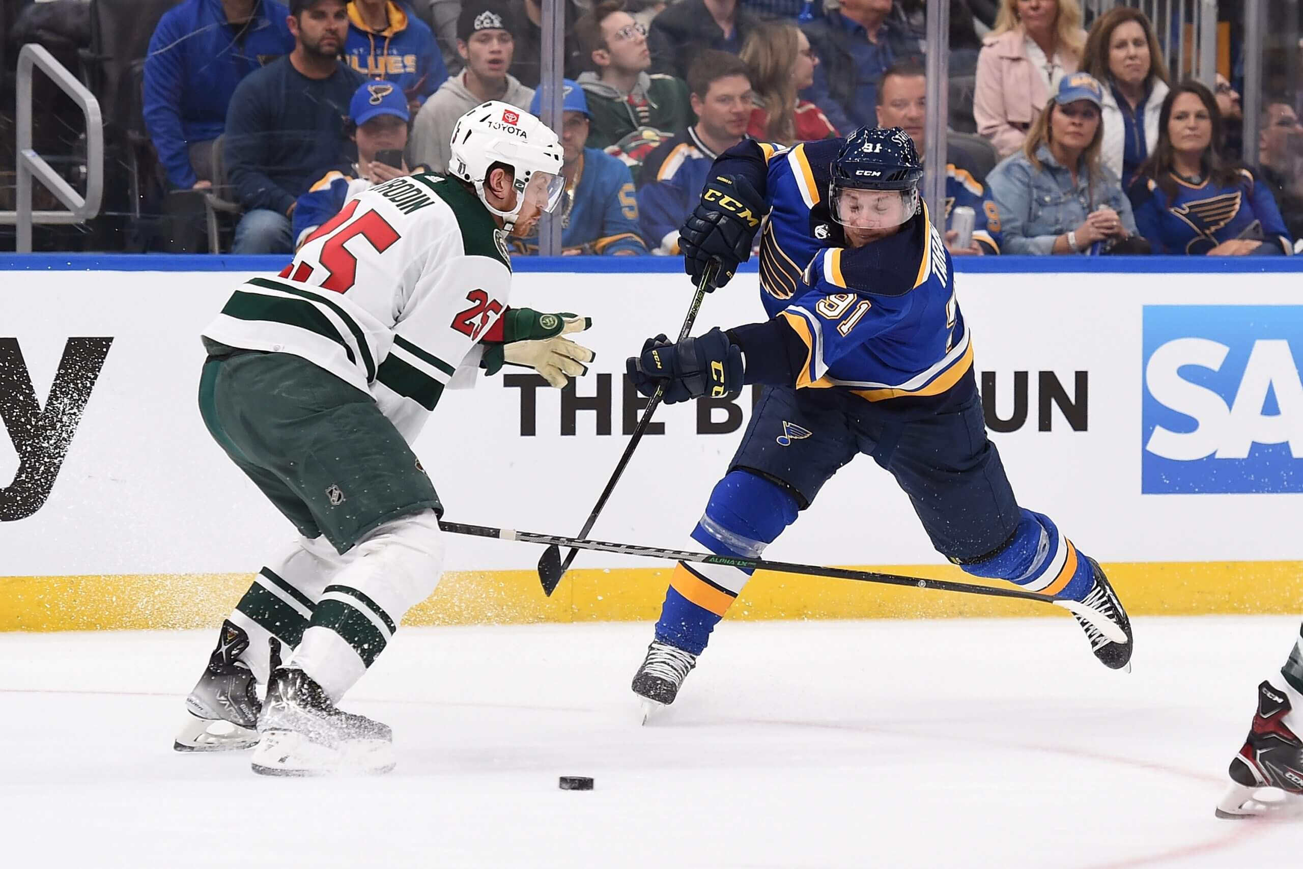 Vladimir Tarasenko has scored 14 goals and 32 points in 37 regular-season games, and 12 goals and 16 points in 17 playoff games against the Wild. (Joe Puetz / Getty Images)