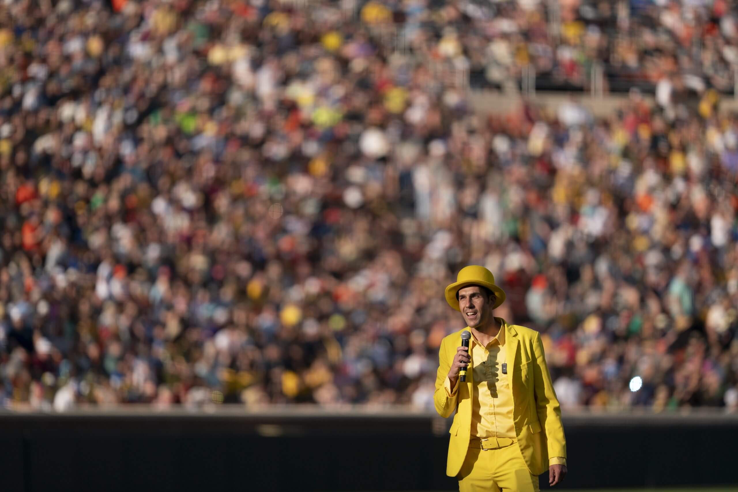 The Bananas have developed a number of signature attractions, including players on stilts. (Jaiden Tripi / Getty Images)
