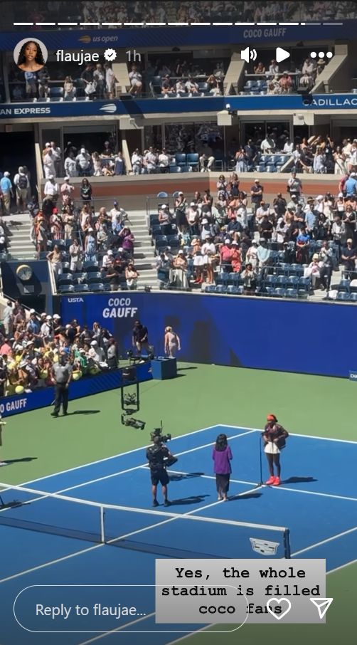 Johnson’s Instagram Stories also showed the packed stadium and her time with Stubbs. “Yes, the whole stadium is filled with Coco fans,” Johnson wrote over one video of the Arthur Ashe crowd.