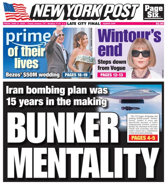 NY Post Cover for June 27, 2025 | New York Post Back cover Tags:/coverAmericaNew YorkNew York CityNewYorkNewYorkCityNYNYCUnited StatesUnited States of AmericaUnitedStatesUnitedStatesofAmericaUSUSA