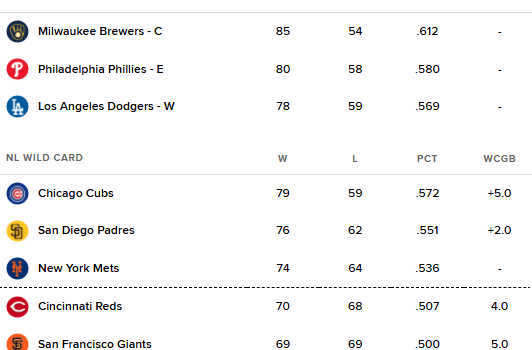 The Padres lost ground to the teams they are chasing and saw their cushion shrink over the teams chasing them. The Cubs, Mets, Reds and Giants won. The Dodgers did not play.