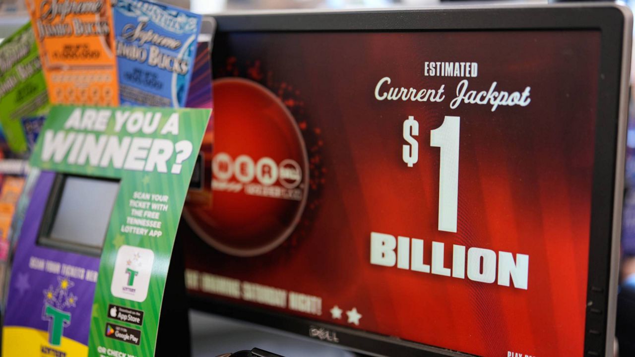 A lottery kiosk advertising Powerball’s $1 Billion jackpot is seen Friday, Aug. 29, 2025, in Nashville, Tenn. (AP Photo/George Walker IV)