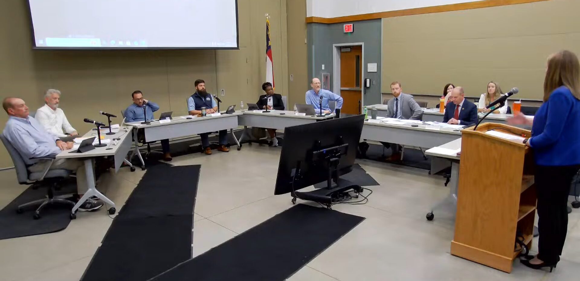 The Pittsboro Board of Commissioners held a public hearing on the proposed budget for 2025-26 fiscal year. No members of the public spoke.