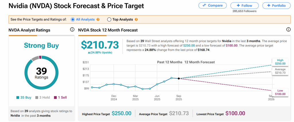 The average NVDA price target is $210.73, which stands for a 25% potential upswing.