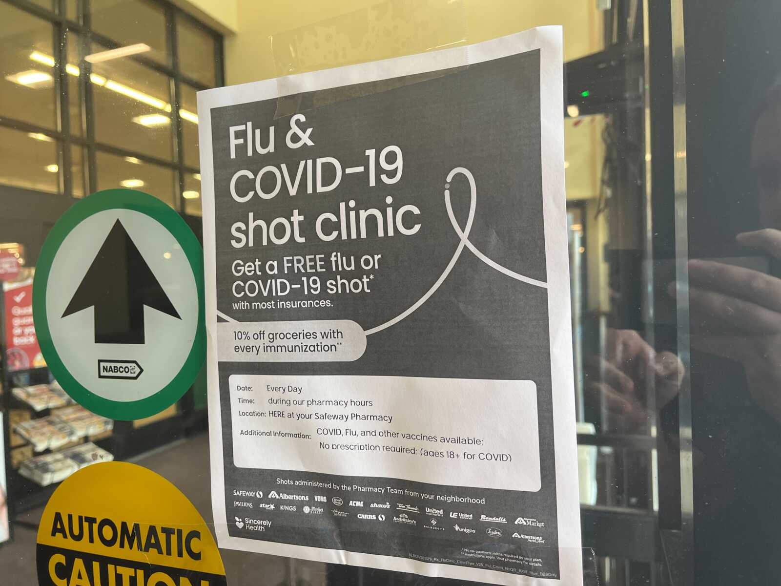 A sign at a Safeway in Falls Church also currently advertises Covid-19 shots for patients ages 18 and up, no prescription required.