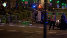 As of 5:30 a.m., photos and video from NBC 5 photographers at the scene showed multiple fire and police cars on scene, blocking off parts of the Magnificent Mile in front of the Aritzia clothing store. Cars could be seen with heavy damage as detectives worked to investigate.