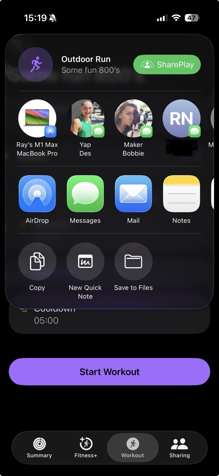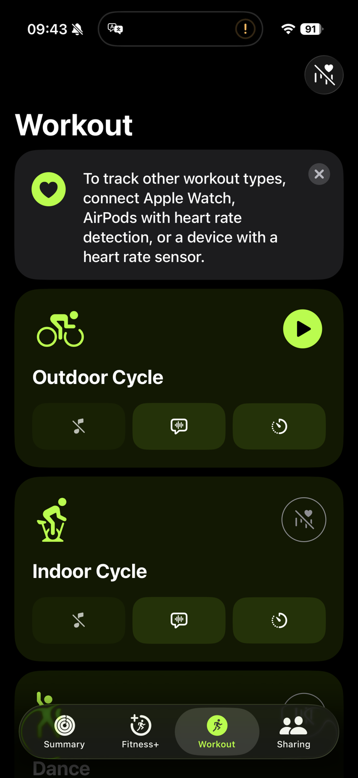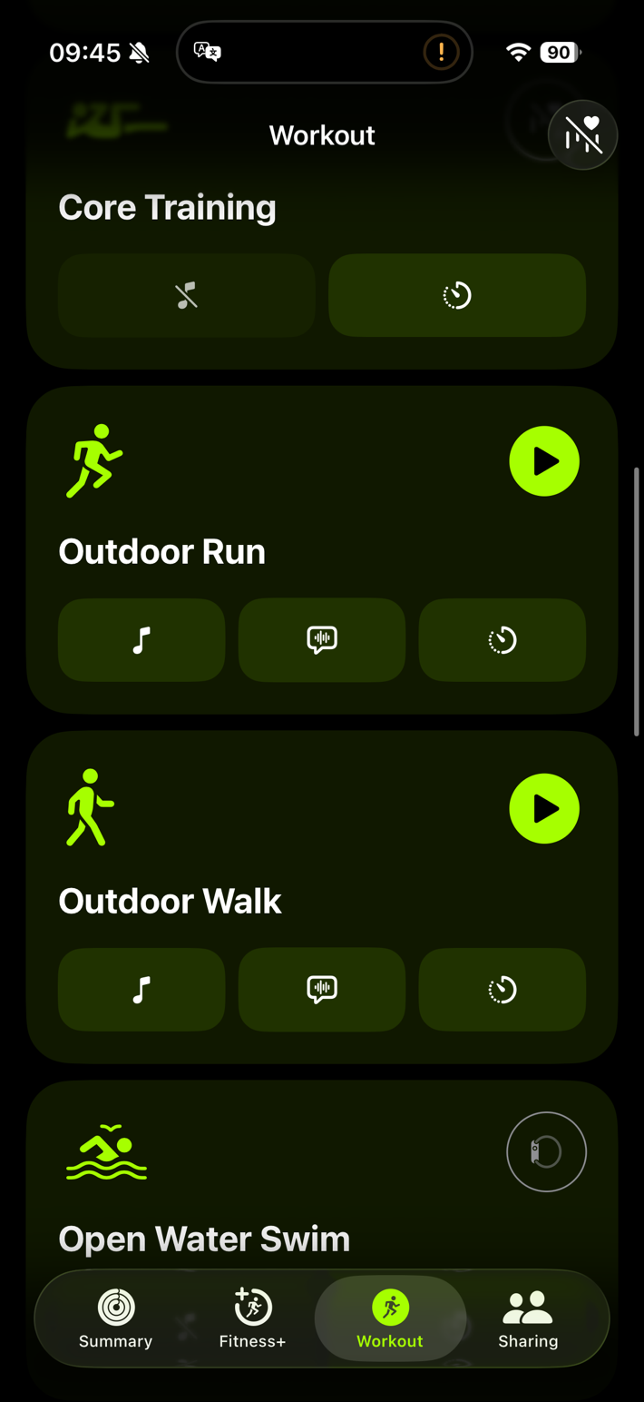 Above, you’ll see the workout types supported. If you don’t have an Apple Watch (and are just using a heart rate sensor), then you’ll have a limited selection and won’t have access to the custom workout builder. Likewise, even with AirPods Pro 3, you’ll get more workout types, but not access to the workout builder. You need to have an Apple Watch on your account with WatchOS 26 to get it.