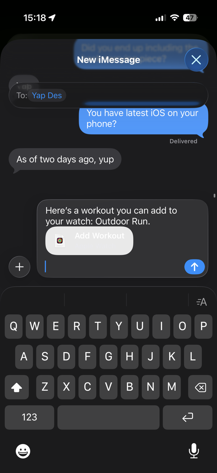 And sure enough, it worked. I sent it to Des, and he was able to open it up just fine, and it offered to send it to his Apple Watch immediately. Super cool/handy.